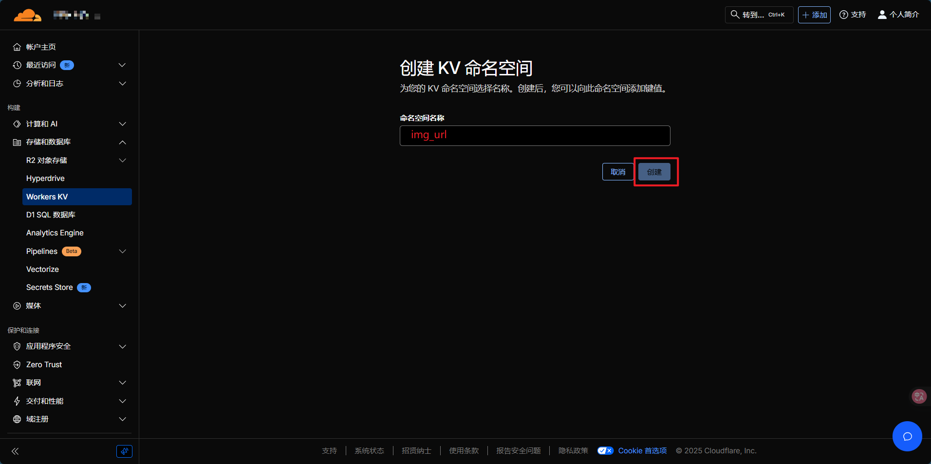 img_url(必须是这个名称) - KV 命名空间:选择刚创建的命名空间