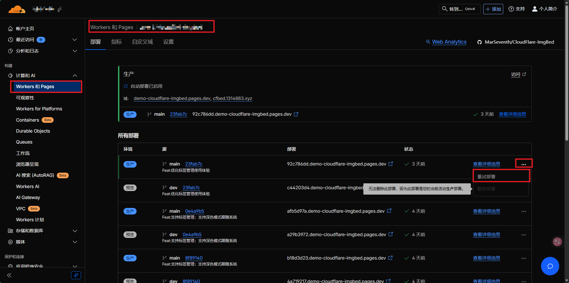 - 如果首次使用,需要授权 Cloudflare 访问 GitHub