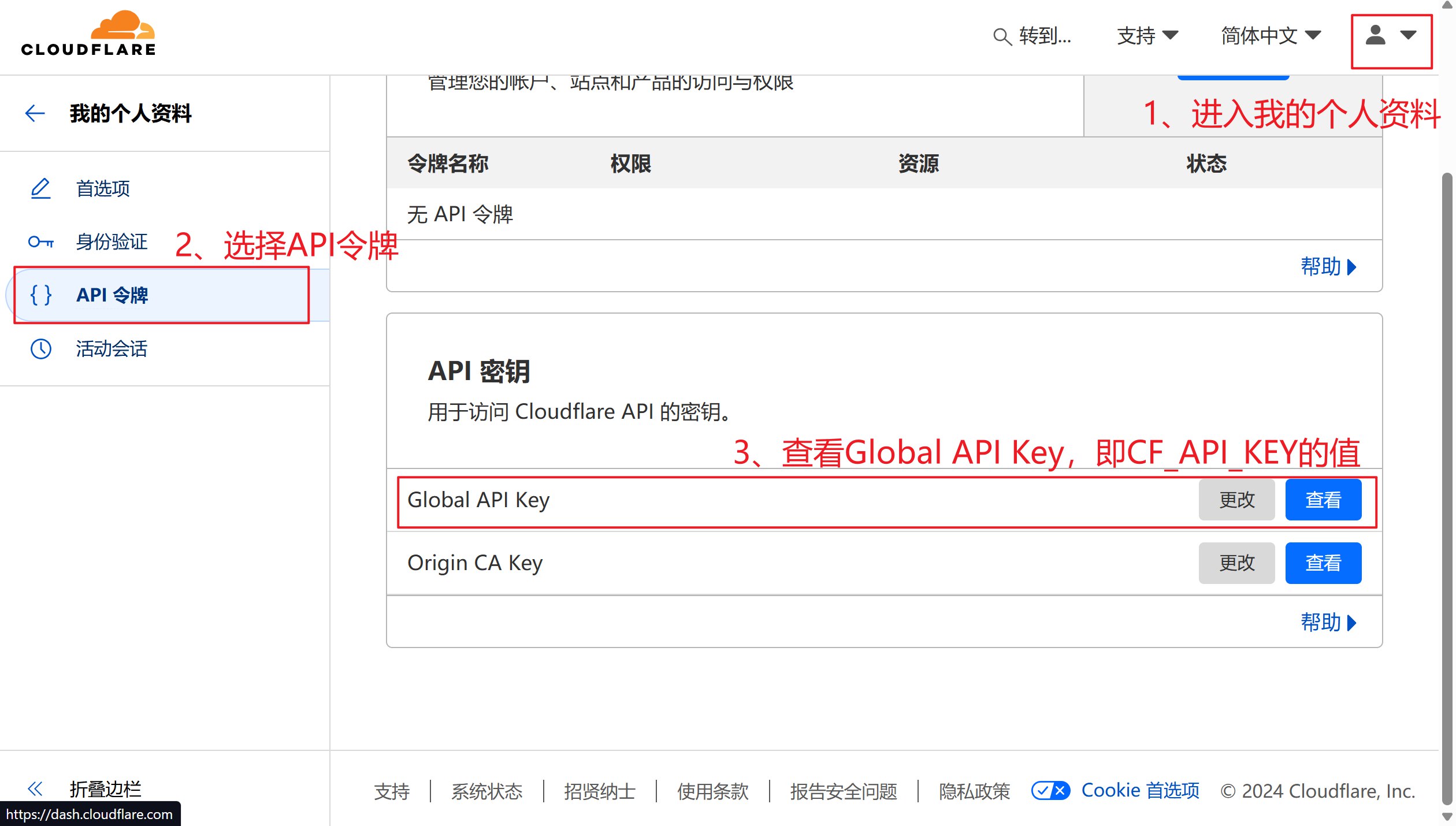 string | Cloudflare Global API Key | 自动清除 CDN 缓存 |